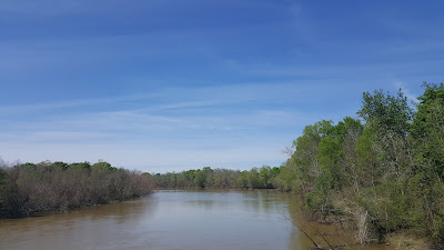 The Sabine River forms part of the borderline between Louisiana and Texas. It's 510 miles long and from what I can glean, has only 3 bridges.